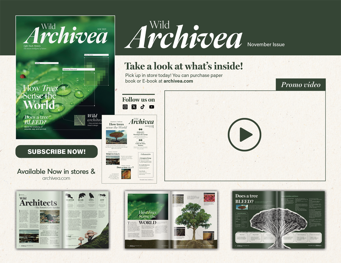 To reflect the sensory experience of a forest through a magazine format, using soft green and ivory tones.